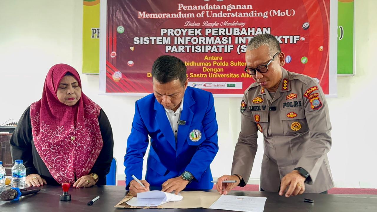 Penandatanganan dilakukan oleh Kabidhumas Polda Sulteng Kombes Pol Djoko Wienartono, S.I.K.,S.H.,M.H., dan Dekan Fakultas Sastra Unisa Palu, Syamsuddin, S.S., M.Si. MoU ini menjadi langkah awal dalam mendukung proyek perubahan Sistem Informasi Interaktif Partisipatif (SIIP).